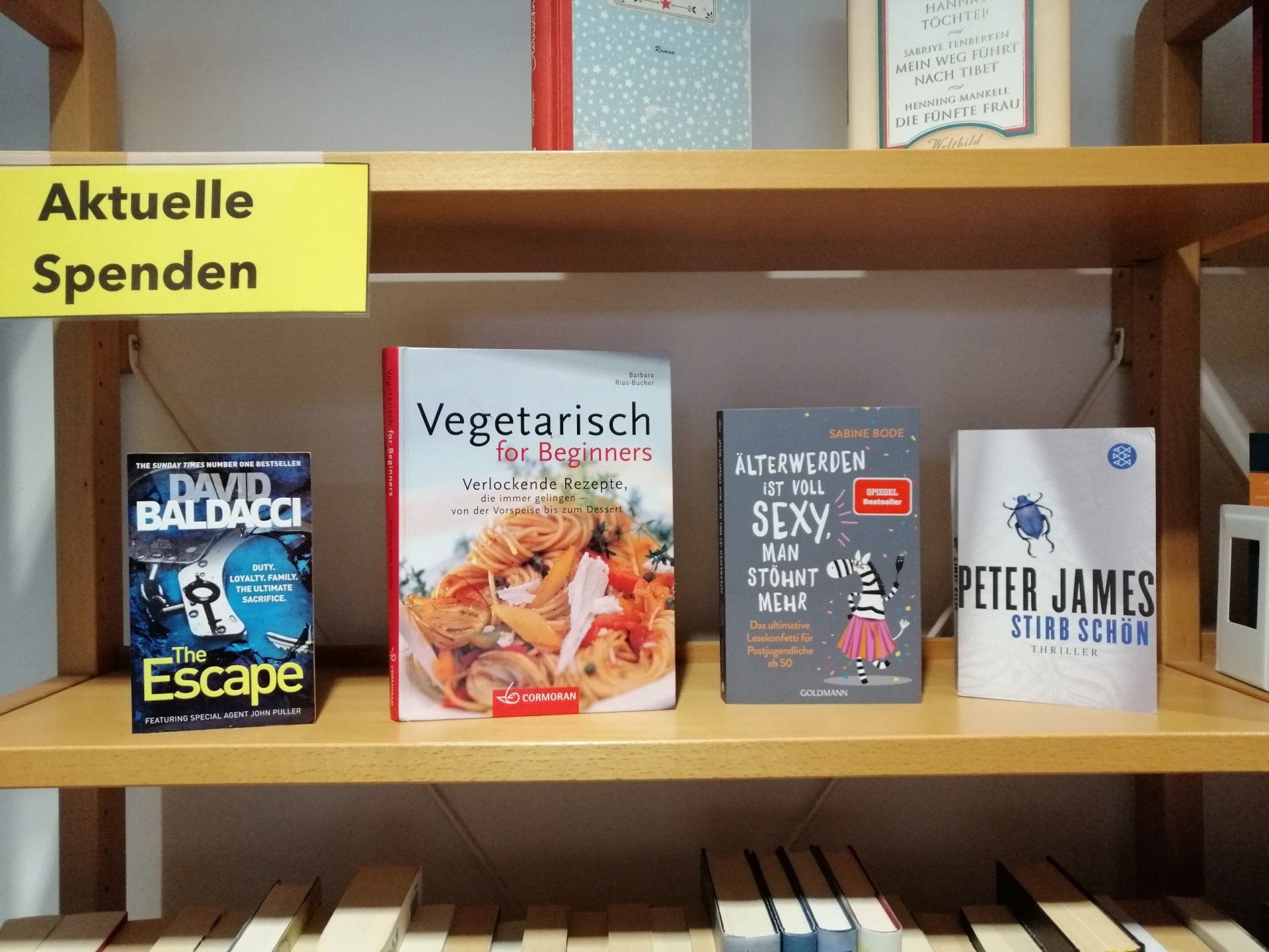 Wir freuen uns über die zahlreichen Spenden von Büchern aller Rubriken, Spielen, CDs und DVDs. Schauen Sie gern vorbei.